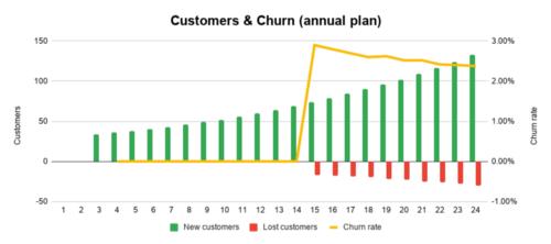 可以看到,按月订阅这部分客户的流失率并没有变化。对于按年订阅客户这个细分市场,要到15个月才能测出流失率(这就更需要监测客户的健康状况了,因为可以避免以后出现不好的意外,让你有机会在客户流失发生之前解决)。