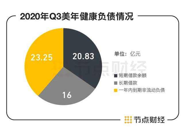 引人注目的除了亏损还有负债。截至2020年三季度,美年健康短期借款余额20.83亿元,一年内到期的非流动负债为23.25亿元,长期借款为16.00亿元,上述3项负债合计形成的有息负债余额69.09亿元,占总资产的35.78%。