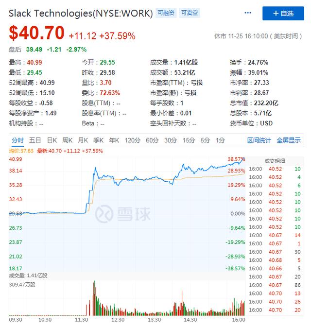 11月26日,据外媒报道,Salesforce正在就收购企业通讯软件Slack进行谈判,最早可能将于下周宣布交易。受到该消息的刺激后,周三Slack的股价上涨接近38%,而Salesforce当天股价收盘则下跌5%。