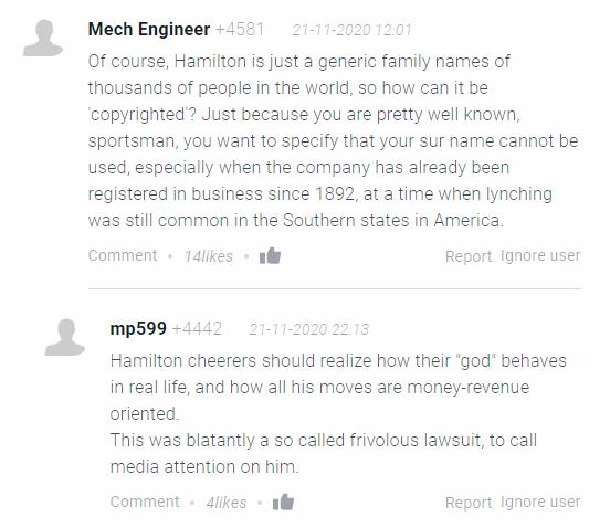 然而,如果注册不了自己的“LEWIS HAMILTON”商标,那确实有点遗憾。