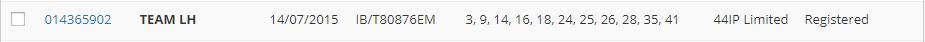 ▲ 汉密尔顿名下44IP申请注册的“TEAM LH”欧盟商标信息(来源:EUIPO)