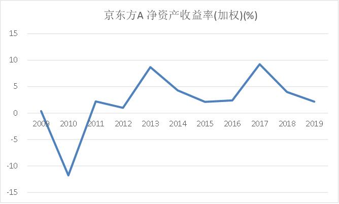 图1:京东方的净资产收益率极低,资料来源:公司公告