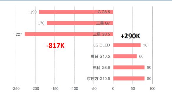 1)三星:计划在2020和2021年将韩国本土的3条共510K产能的大尺寸LCD产线全部退出,且其在苏州产线已经协议出售给TCL华星(注:TCL科技的子公司)。