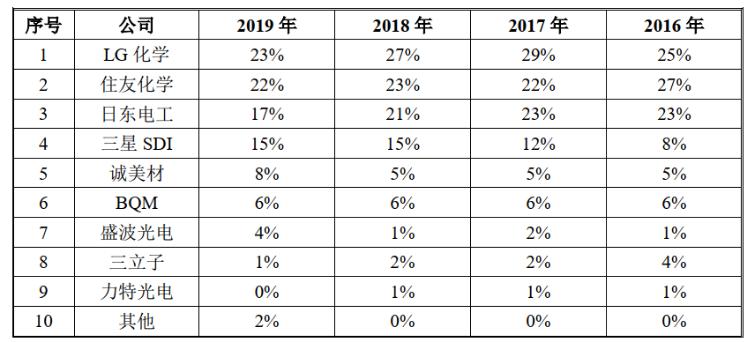图8:偏光片全球厂商份额,资料来源:公司公告