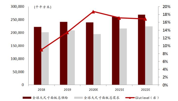 此处更进一步说明的是,当我们考虑需求后,供需紧张的程度其实是很有限的,面板行业经常用glut值(即超额供给量占需求量的比值)来反应估供需状况,历史经验数据gIut在15%为供需平衡,因为有部分渠道库存需求;