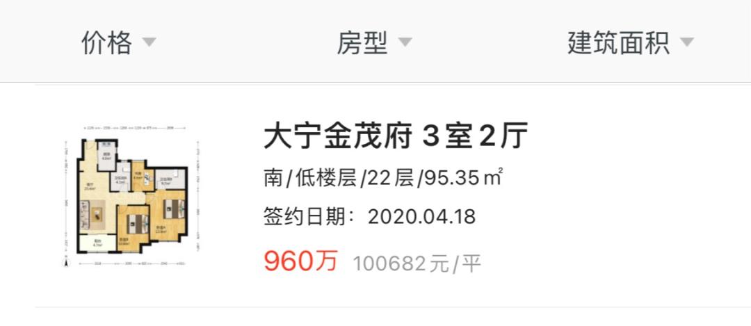 去年底今年初小三房成交价都是900多万,但如今金茂府挂牌最便宜的那一套,已经到了1250万。