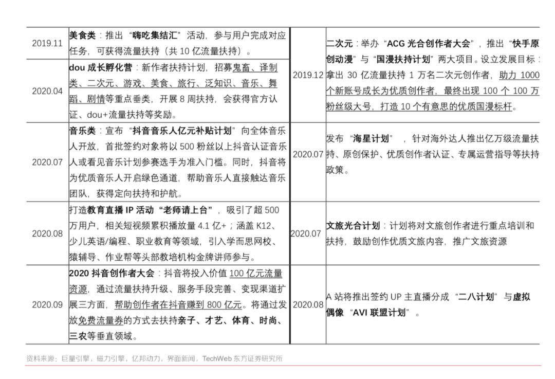 从抖音和快手发展的路径和策略看,重内容运营是所有追求用户时长增长的内容平台必须选择的道路,抖音从成立之初就重运营,快手经历了无运营(2013-2016)→轻运营(2017-2018)→加重运营(2019-2020)的阶段。