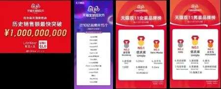 快人一步,总会先取得结果。优衣库的网络线上业务非常“给力”,2016年双11,3分钟之内销售额就破亿,是全品类销售之最。2019年以历史最快速度破天猫旗舰店10亿销售额。从2015年到2020年,已连续6年位列天猫双11促销男、女装销量榜首。