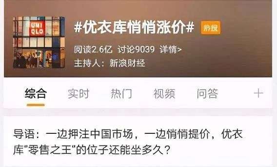 转型并非一蹴而就,优衣库也并非一片坦途。线上下单线下自提使用率其实并不高,因为中国的物流成本很低,且非常方便快捷,所以用户并不倾向这种方式。日本市场的增长乏力,欧美市场受阻,疫情危机后,中国市场成了挽救优衣库三年来首次业绩下滑的救命稻草。11月14日,优衣库再度登上微博热搜,原来它“悄悄”涨价了,遭到网友们的纷纷吐槽,“倒不是买不起,而是感觉不值了”。