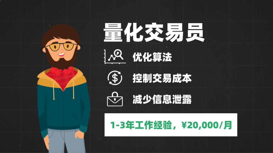 如今泡沫褪去,新宠儿是人工智能。以量化交易员为例,这份工作就是通过优化算法,控制交易成本,减少信息泄露。现在这个岗位在招聘平台上,1-3年工作经验,平均月薪在2万上下。