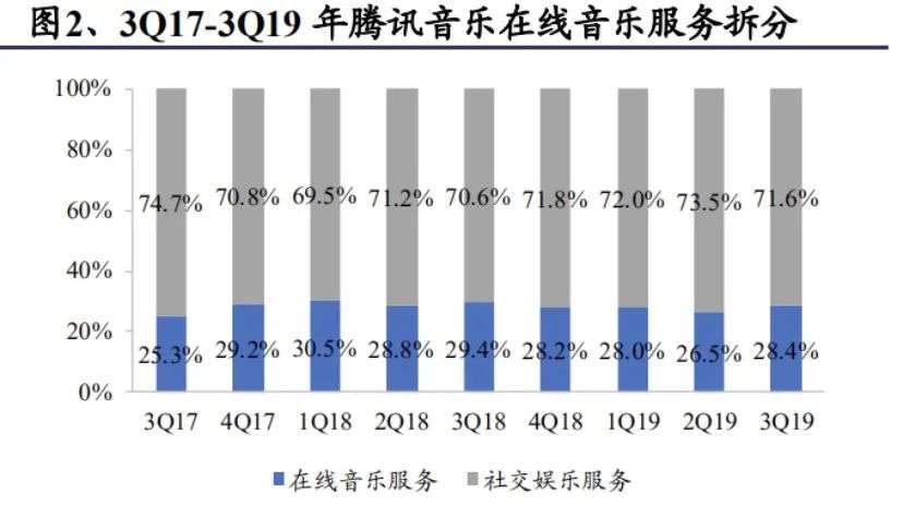 除了建立音乐矩阵之外,腾讯也一直不放松社交娱乐的建设。经过腾讯的苦心经营,《全民K歌》用户的ARPU值(付费用户平均收益)已经达到111元,效益是腾讯音乐用户的十倍。从腾讯音乐的财报中我们也可以看出,虽然在线音乐服务是核心,但真正盘活腾讯音乐生态的还是其一贯擅长的社交服务。