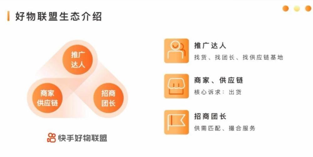 侧重供应链的服务商在快手生态中将占据更重要的地位。在9月的电商开放日上,快手对服务商管理体系进行调整,划分出培训、产业带、MCN与供应链四种角色。此外,快手还开始为分销库招募“招商团长”与“供应链基地”,专门服务于品牌货源的拓展与人货匹配。