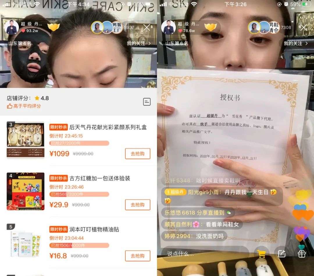 超级丹在直播中向观众展示授权书