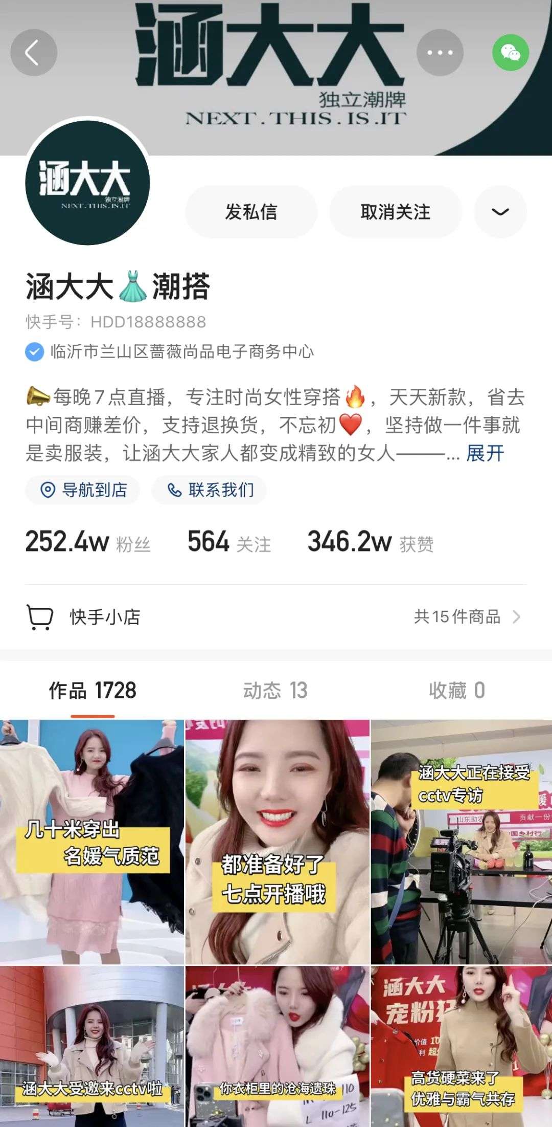 在临沂,做直播的都知道徐小米,从微商转型做快手服装主播,善于参加官方活动,今年616大促首日,她的销售额冲到全国第三。此后不到半年,徐小米涨了300多万粉丝,如今平均每场直播销售10万单。团队规模成倍扩张以外,她又新租了一个占地一万五千平米的仓库。