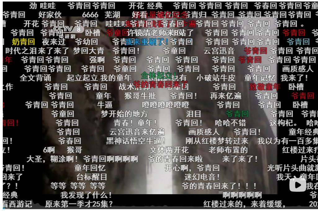 “爷青回”一词为“爷的青春回来了”的缩写。在类似86版西游记、周杰伦最新MV、仙剑奇侠传、产子回归的papi酱等视频内容的弹幕中,都有无数年轻人刷屏“爷青回”,来形容自己喜欢的经典内容终于久违地更新的快乐。