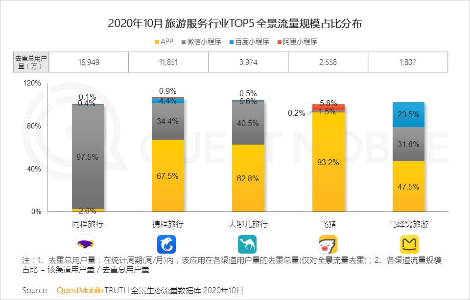 5.1 旅游服务行业头部应用依附不同流量渠道,展开全景流量的较量