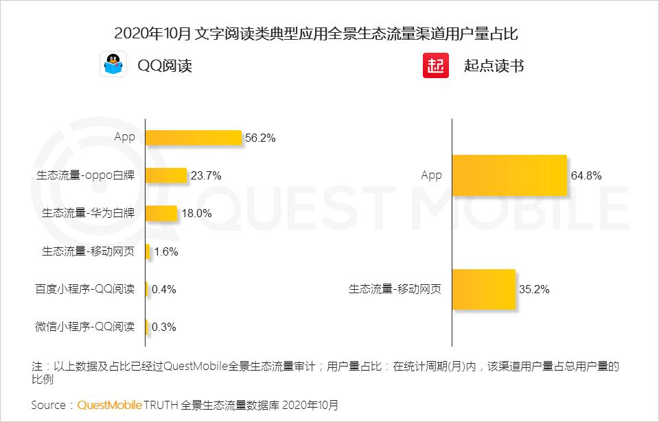 1.4 文字阅读类应用以APP为主要流量渠道,同时加深与终端设备合作及移动网页布局,形成多元化的全景生态流量
