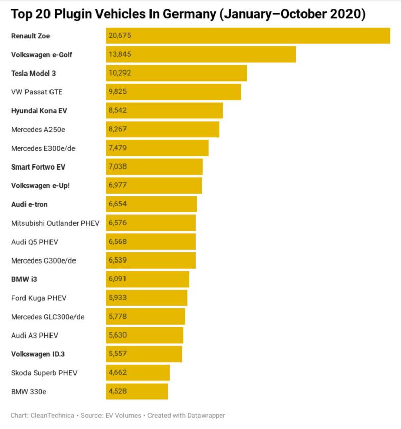 德国的电动车市场,大众、雷诺、现代汽车等传统汽车品牌的市占率已高达67%[3]。尤其是雷诺的ZOE,上半年在欧洲的销量达到约3.8万辆,为欧洲销量最高的电动汽车,高于特斯拉的 Model 3 的3.3万辆与大众高尔夫的1.8万辆。