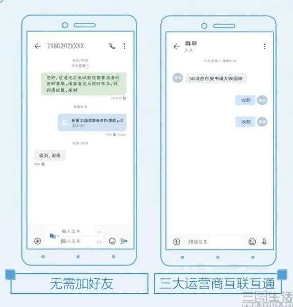 事实上,RCS结合VoLTE业务后正是5G消息。而通过5G消息,用户之间除了可以发送传统的短信及彩信外,还能够发送清晰度更高的照片、共享位置、发送文件、创建群聊、视频通话、银行转账、网络购物,以及传输文件等众多功能。而5G消息与RCS之所以被运营商看重,外界推测或正是因为运营商认为这是能够动摇微信的等IM软件“统治”的关键。