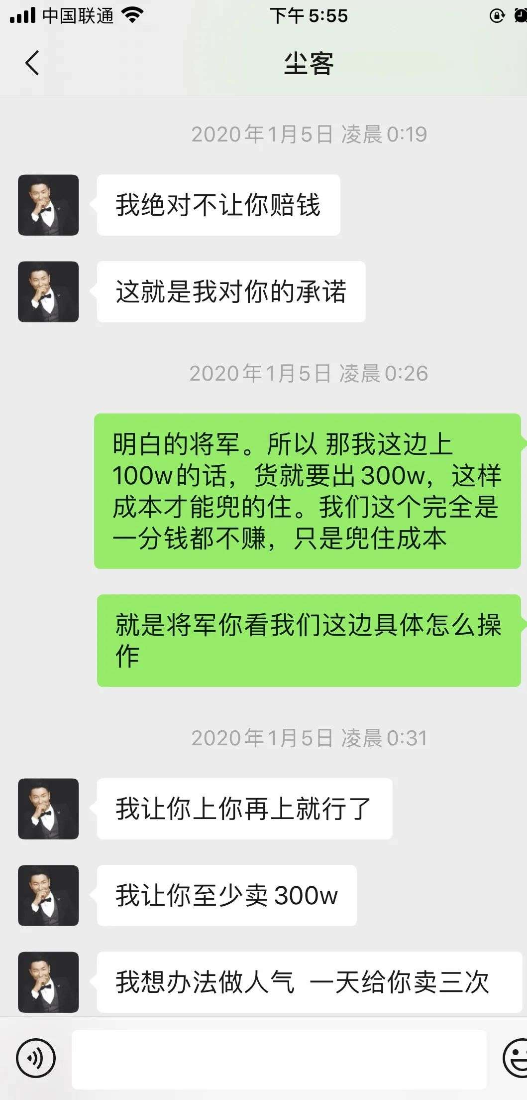 尘客将军可是快手里响当当的知名正能量主播,这个机会看起来很双赢。当时尘客将军想要提升自己在快手荣耀赛的排名,故许以利益诱导和交易承诺(像不像作弊),双方最终约定:红姐出打榜费100万现金,尘客将军以300万卖货返还。