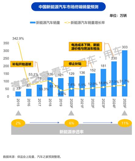 在整个汽车领域,新能源汽车具有很高的成长性,成为汽车市场的一抹亮色。《2020中国汽车消费指南》预测,到2025年新能源汽车销量将突破300万辆,渗透率达到10%以上。