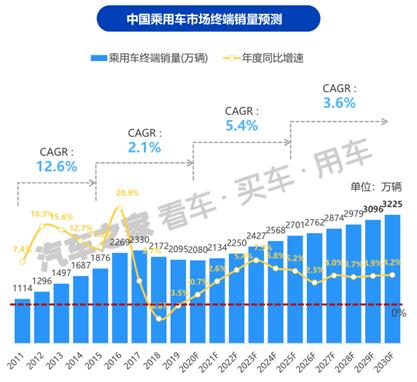 根据《2020中国汽车消费指南》显示,中国当前汽车千人保有量仍处低值,2030年将逼近300辆,400辆/千人大概是中国汽车千人保有量的极限值。在乘用车领域,虽然疫情之下,2020年中国乘用车销量继续下降,但预计2023年恢复到历史高位,到2029年中国乘用车销量有望突破3000万辆。