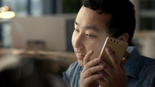视障工程师用读屏软件“看”手机;图片来源:《伴你前行》
