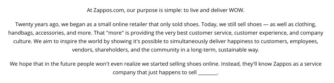 最后,有兴趣的读者还可以看一下Zappos的宗旨,是不是WoW到你?