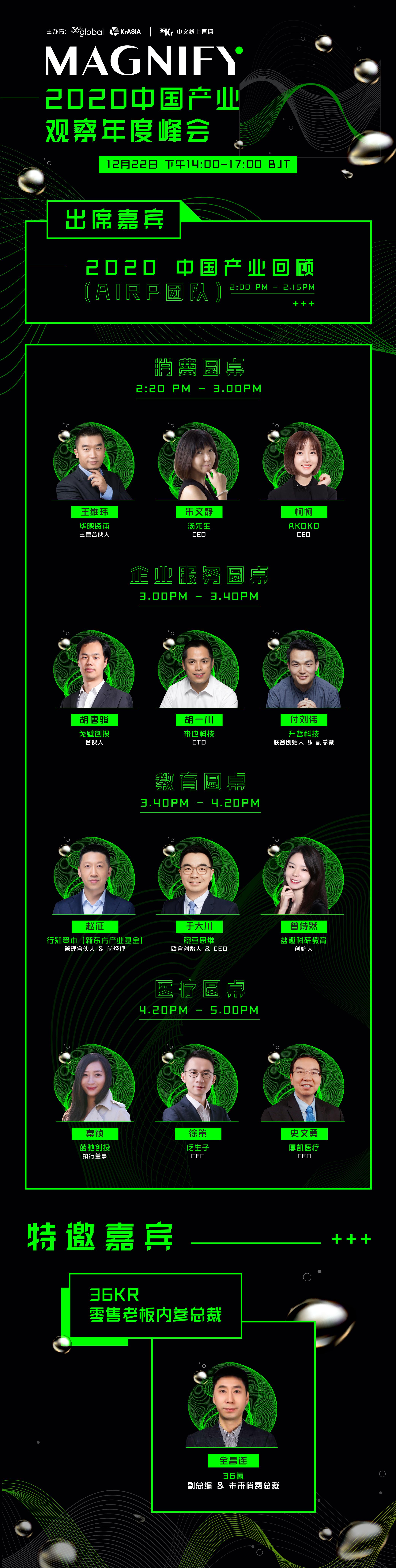 如欲和嘉宾们共同回顾 2020 年中国产业发展动向,把握行业趋势命脉,发掘亚洲历史性的新机遇,请届时关注36氪直播间:https://36kr.com/live/994480689379456