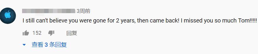 “我始终不敢相信你在消失两年之后又回归了!我非常想你Tom!”