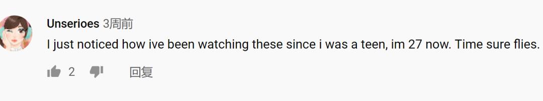 “我十几岁的时候一直在看这些,现在我27了,时间过得真快呀”