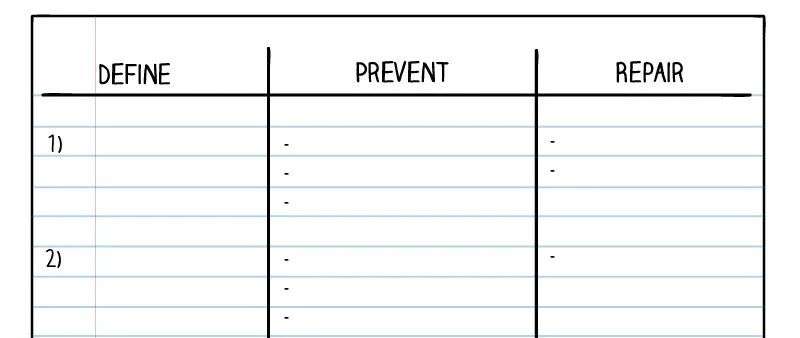 最后在 “修复”(Repair) 一栏中写下:如果最坏的情况发生,我能做什么来减轻损失?或者能向谁寻求帮助?