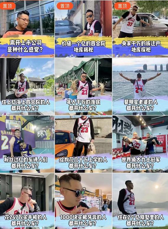 快手、抖音则又有一批主打男性用户的炫富网红,以“带你看有钱人的生活”居多。比如抖音上的氪金研究院,随机采访街头路人一身行头多少钱,不知真假,还真采访到不少平平无奇一身十来万的路人。