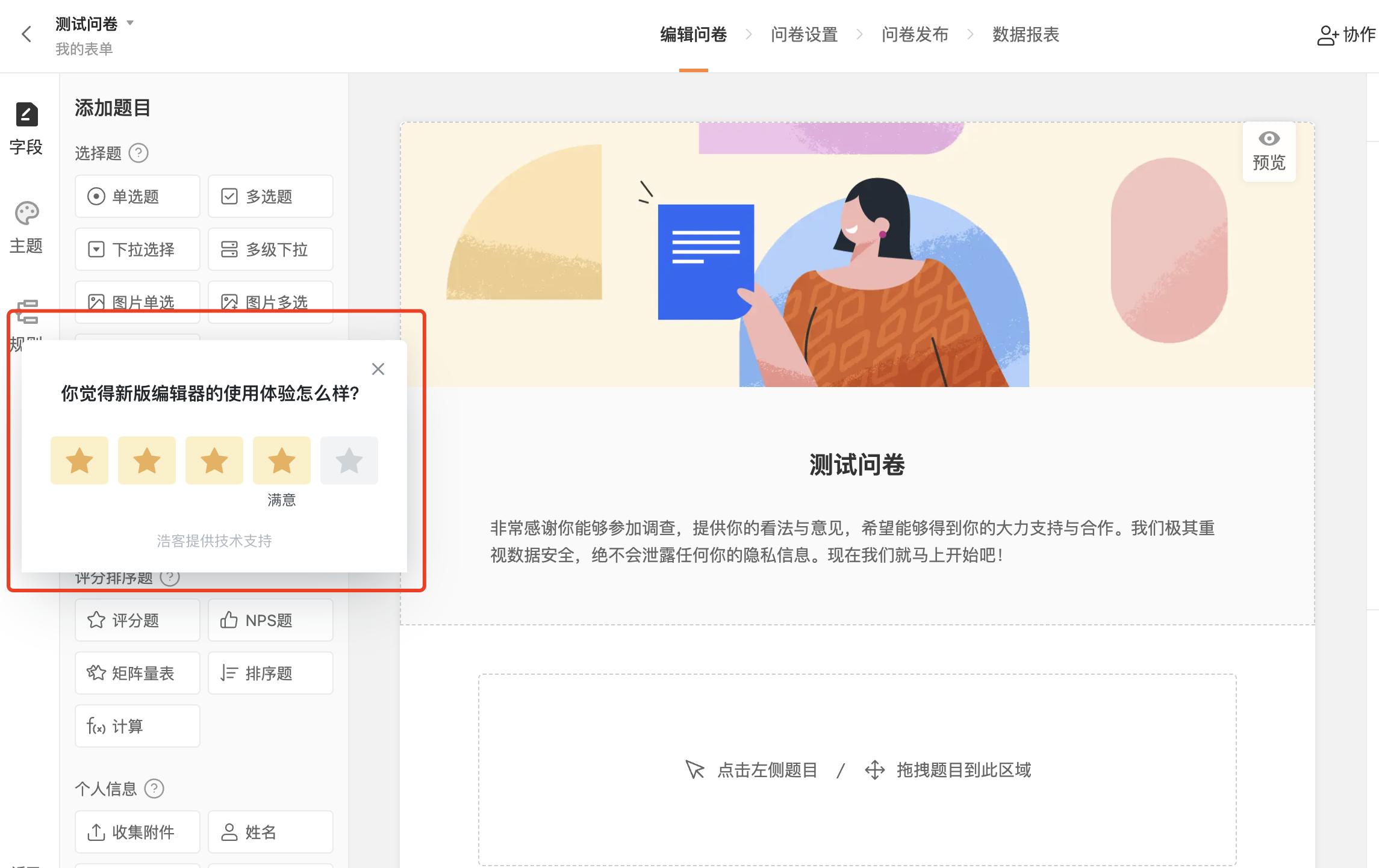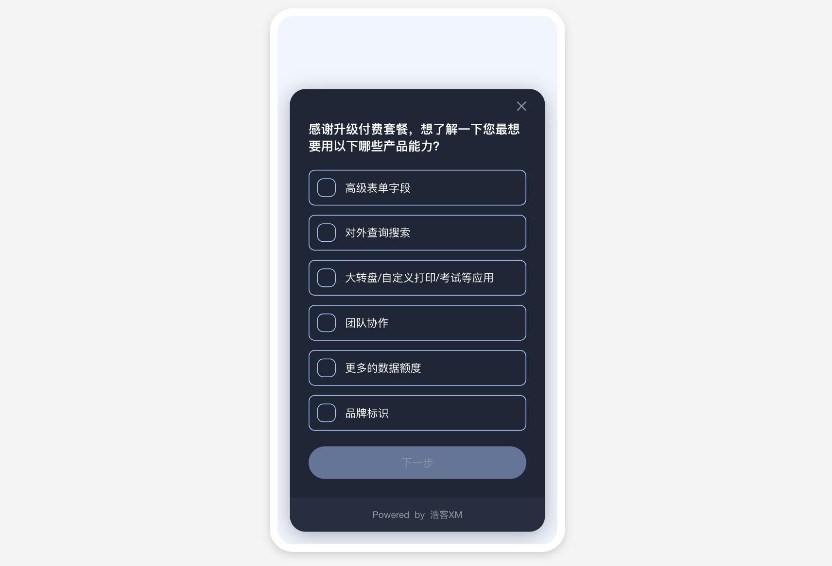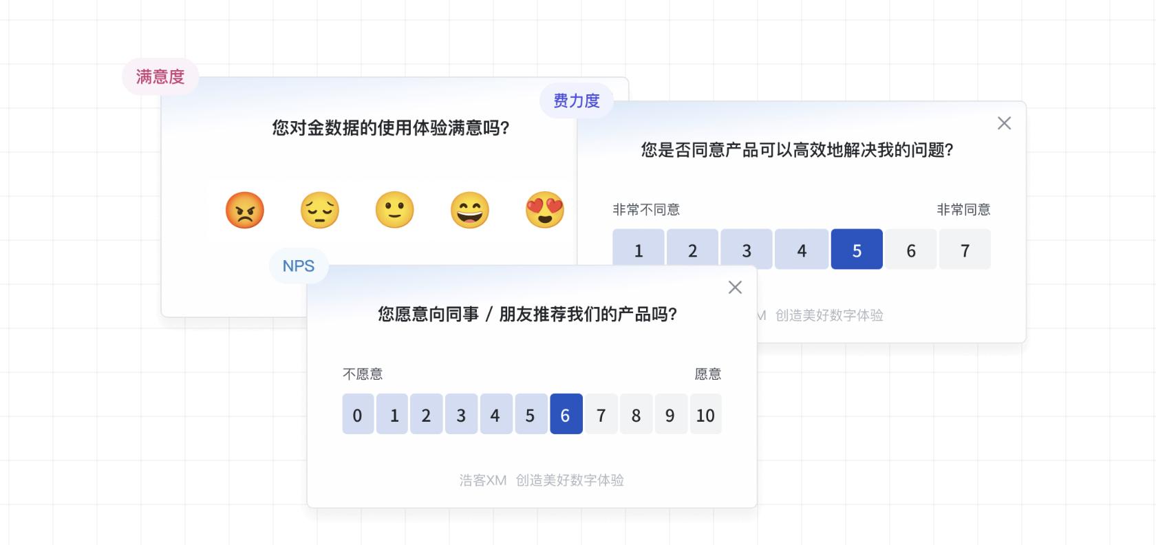 在高数据回收率的保证下,浩客XM 让「向用户提问」这件事变得更加优雅。我们可以自定义向谁提问、问什么问题、在什么时机提问,也可以彻底摒弃那些啰嗦的长问卷,通过不断推陈出新的填写方式,让用户填写反馈从一种负担,成为一项愉悦的行为。