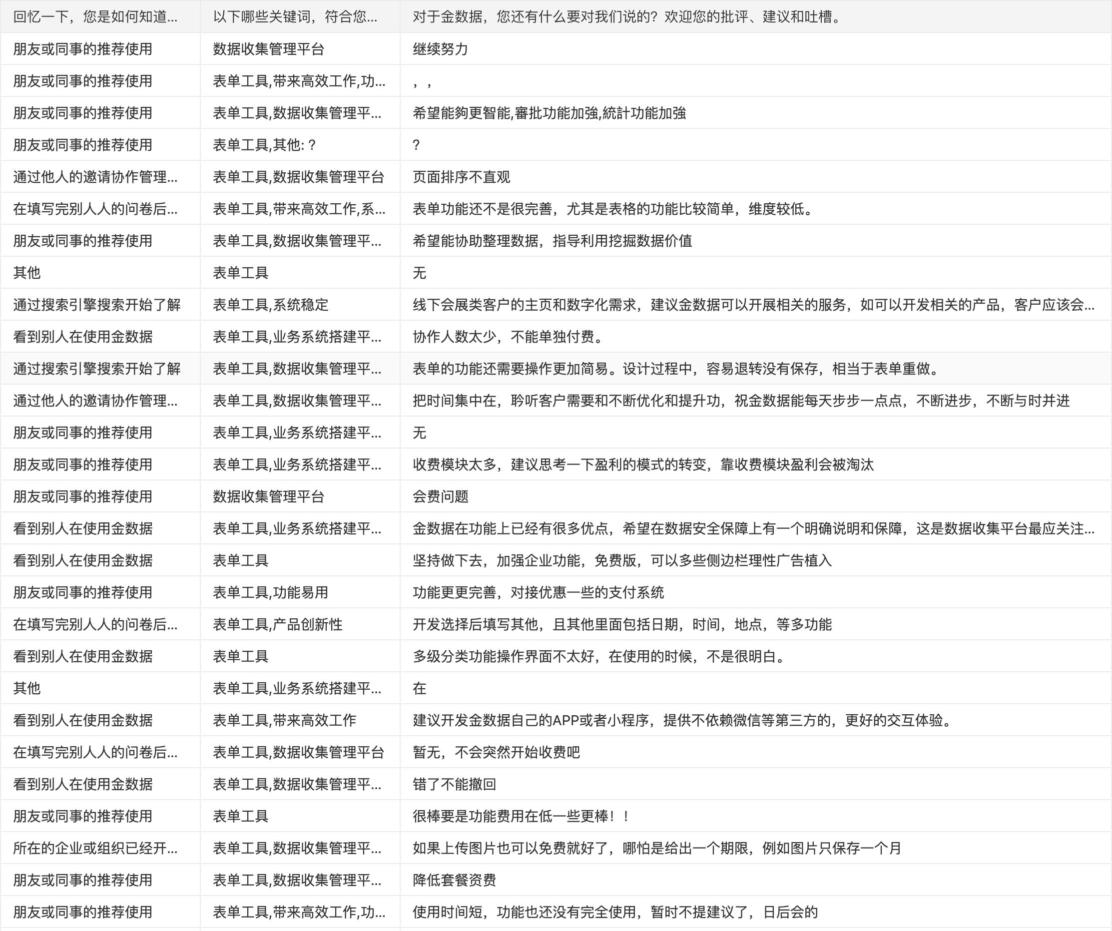 老实说,我们琢磨这些问题有十年了。从金数据 2012 年创建的时候开始,我们就通过各种方式努力向用户靠近:问卷调研、用户访谈、线下小金俱乐部的用户聚会、在线客服通道、一个个曾经活跃的微信群。也曾疯狂地使用市面上的各种各样的数据分析工具,去了解用户那些欲说还拒的困难、诉求与挑战。